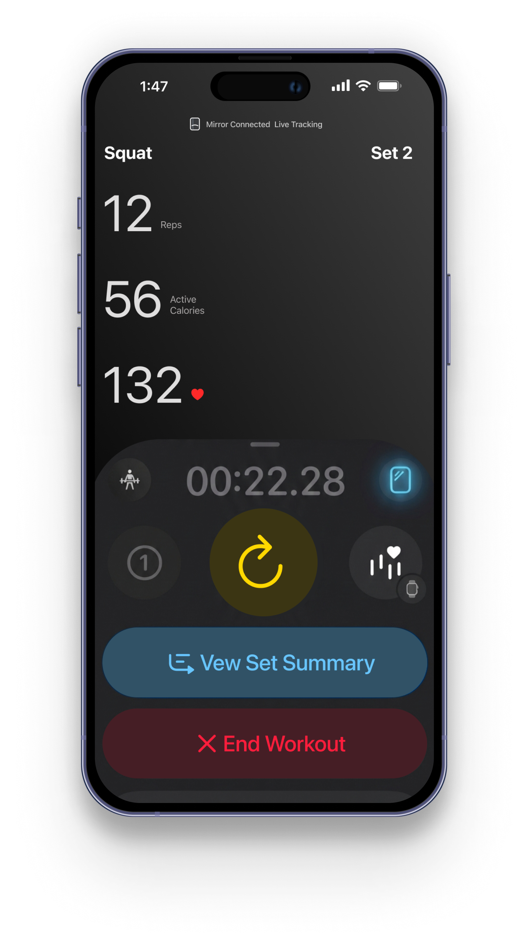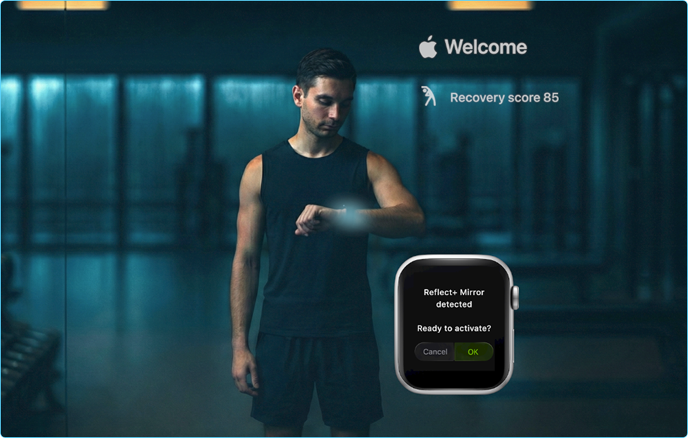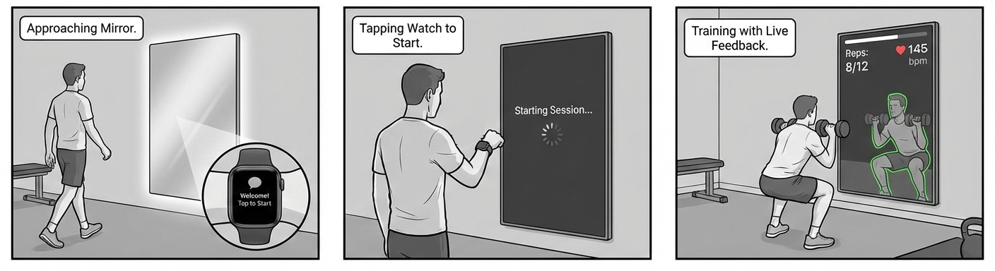 One session, coordinated across Watch, Mirror, and iPhone.