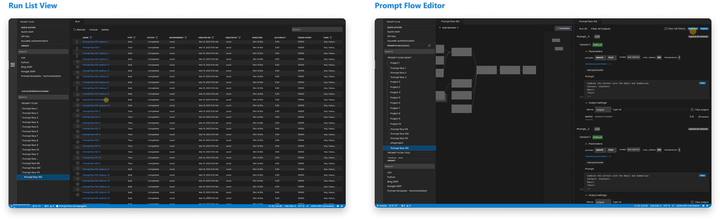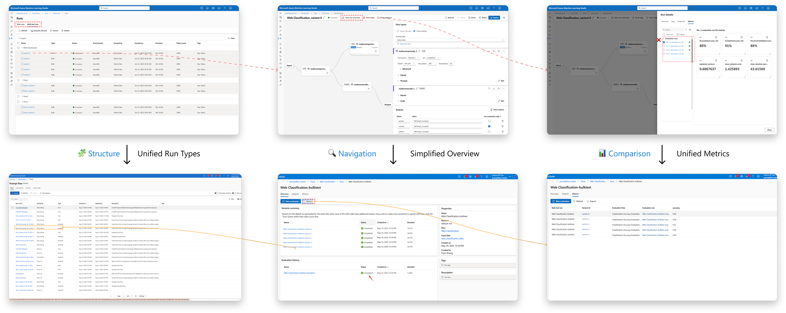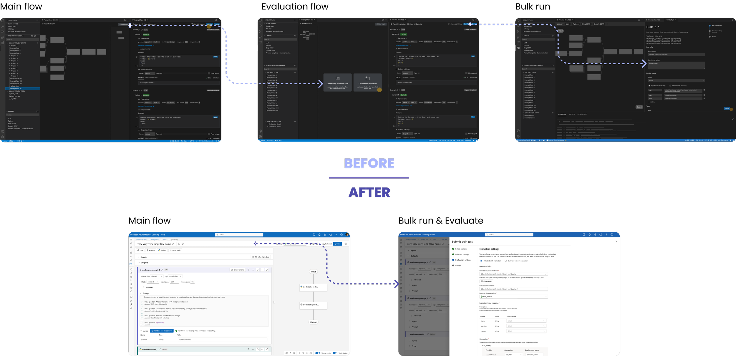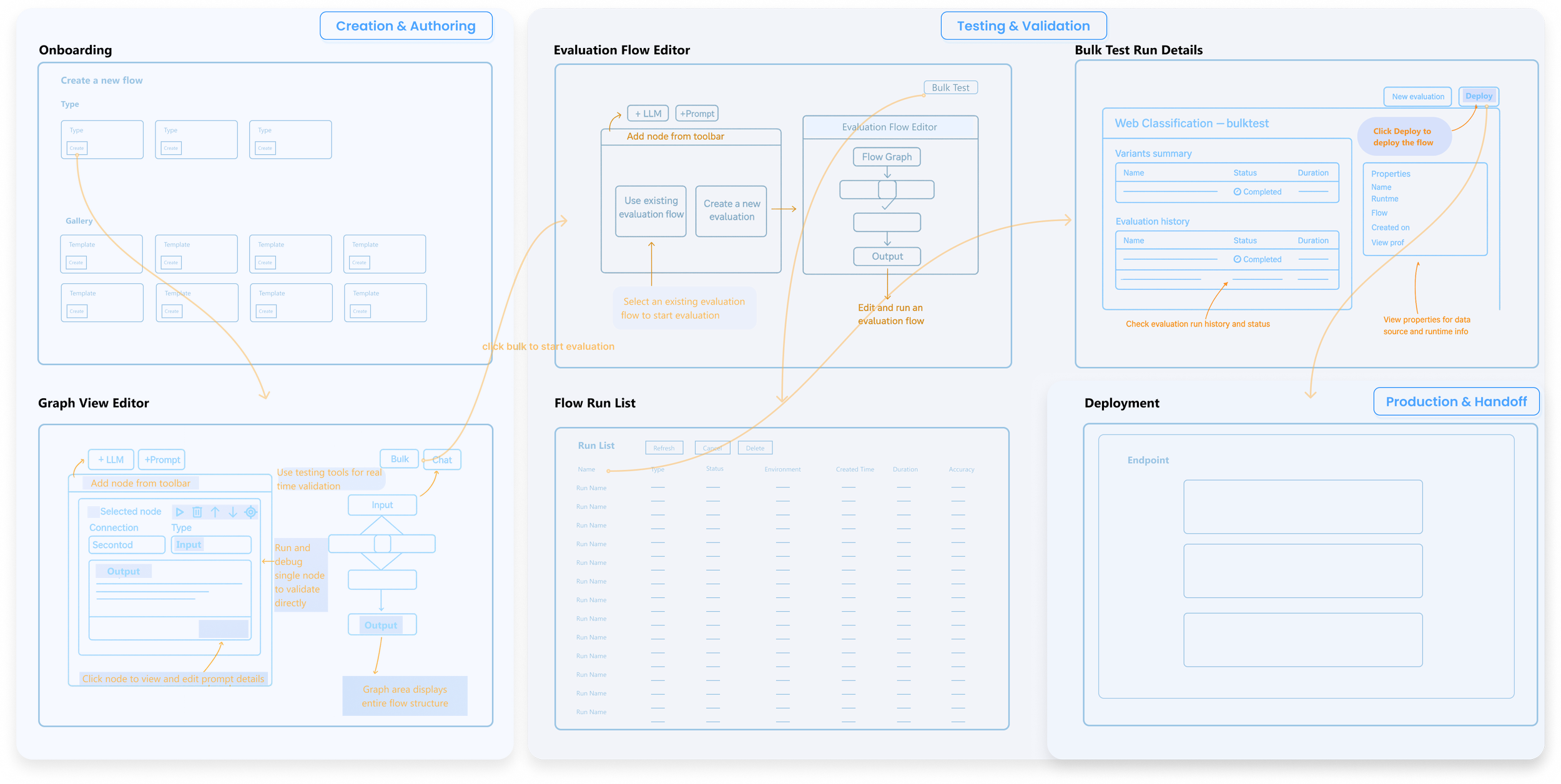 Led end-to-end design of Prompt Flow’s visual system: Author → Evaluate → Compare.