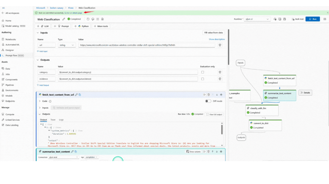 We scoped features based on research insights and got feedback from designers, engineers, and product managers. My task is to design Prompt Flow development and evaluation.