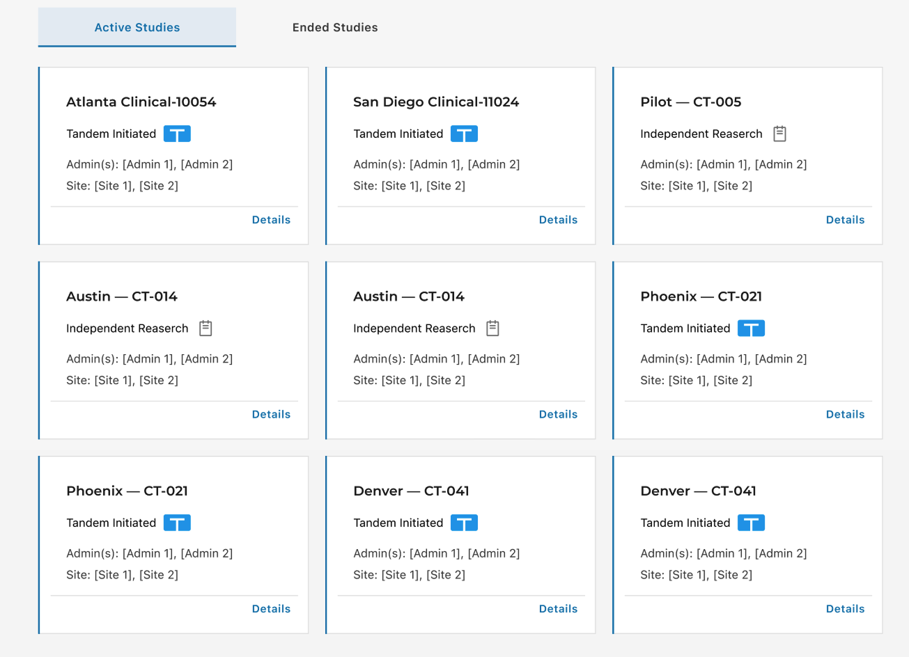 Insight: Dense tables made it difficult to scan study metadata and distinguish trial statuses.